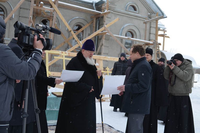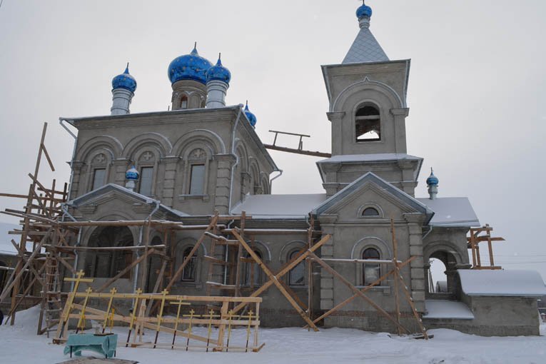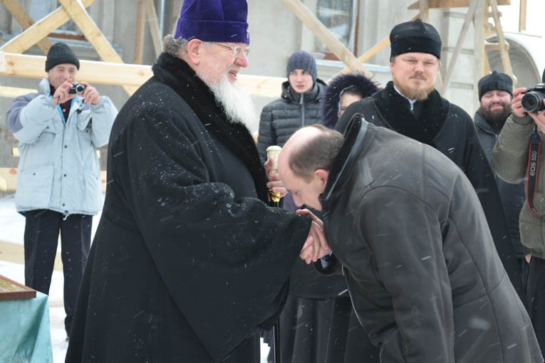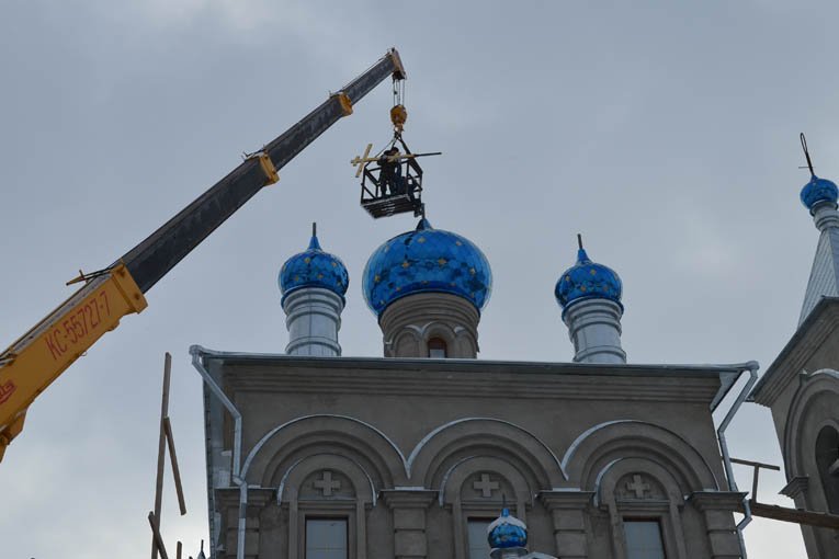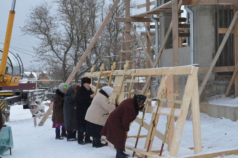 Воздвижение крестов на купола храма Рождества Пресвятой БогородицыФотогалерея, 14.01.2013 с. Щучье, Воронежская обл.